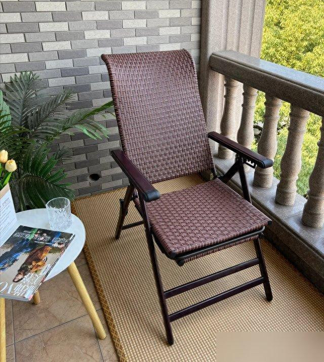 藤椅更绝,垫子凹成屁股形状,灰扑扑的毛毯角卷成麻花,一看就知道主人在上面打过盹追过剧哭过电影。